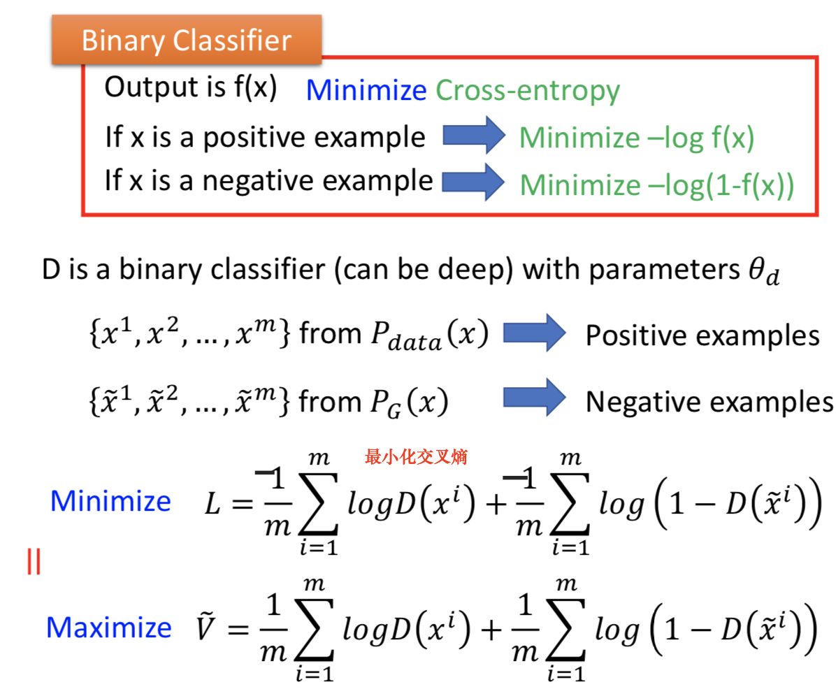 如图所示,在实践训练中,我们不可能求得$P_G$和$P_{data}$的期望,所以只能从真实数据分布和生成数据分布中分别采样,代入到损失函数求的交叉熵。