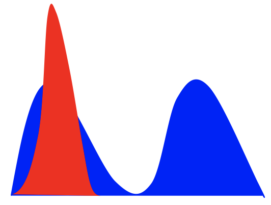 还有一种原因可能是,两个分布都是高维的,但是两个分布都十分的窄,交集相当的小,这就导致JSD比较大。