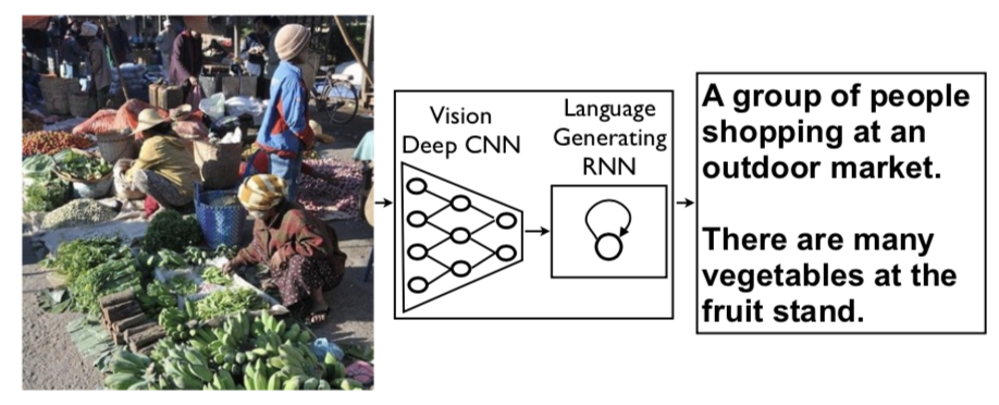 在本文中,作者使用CNN来代替RNNs的Encoder功能,将输入图像编码成固定长度的词向量表示,这样做的原因在于CNN在图像特征提取中表现极为出色。CNN+RNNs这种端到端的神经网络使用起来相当方便。