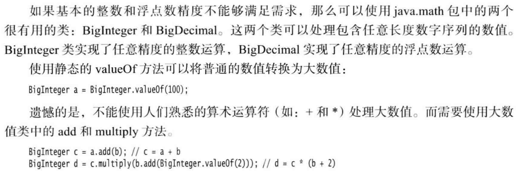 在 Java 中, 所有 的数值类型所占据的字节数量与平台无关。注意, Java 没有任何无符号(unsigned) 形式的 int、long、short 或 byte 类型。